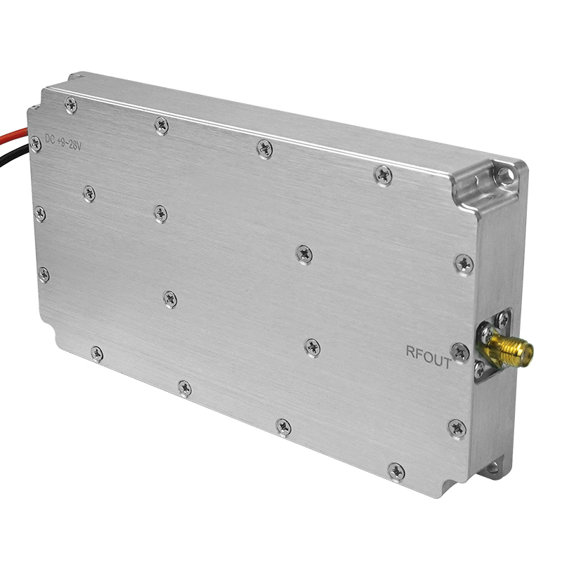El módulo de fuente de señal de contramedida de modulación digital es un módulo de contramedida que incluye una fuente de contramedida de modulación digital. Se puede utilizar agregando un módulo amplificador de potencia y conectando una antena de transmisión. El módulo utiliza un chip lógico FPGA para el control principal, combinado con la excelente estabilidad de frecuencia de un VCO bloqueado en frecuencia para crear un módulo de señal de modulación digital de contramedida para drones. La señal de banda base de modulación digital se genera internamente por la FPGA, se carga en una onda portadora con la frecuencia de oscilación del VCO y se transmite a través de la antena en el proceso de contramedida. El módulo utiliza una interfaz RF SMA de 50Ω de salida, que se puede conectar fácilmente a módulos amplificadores de potencia con interfaz SMA.