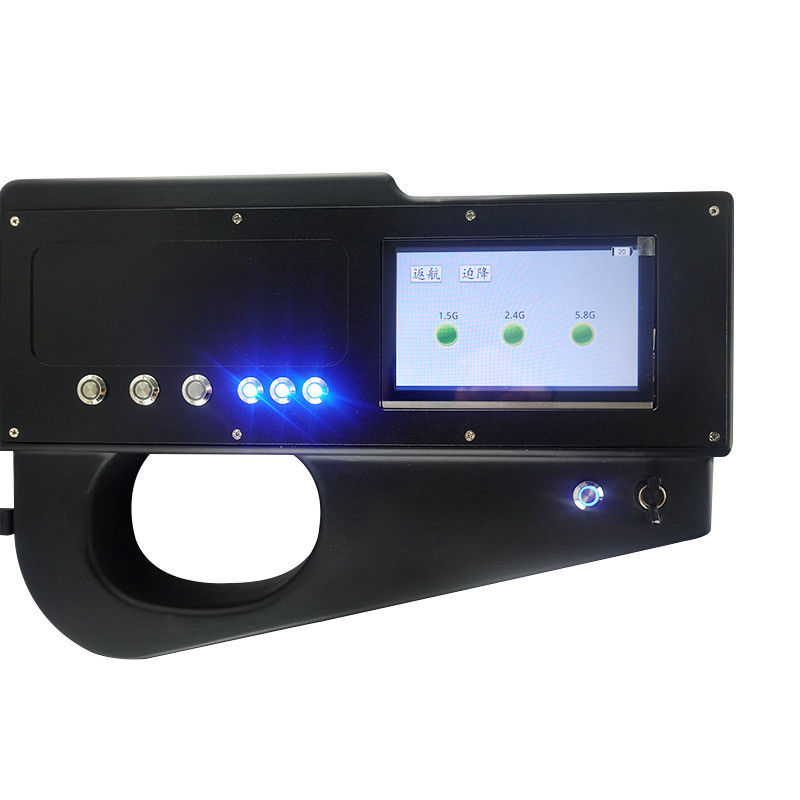 El producto es un dispositivo anti-drones con una pantalla que puede controlar cada banda de frecuencia a través de la pantalla.