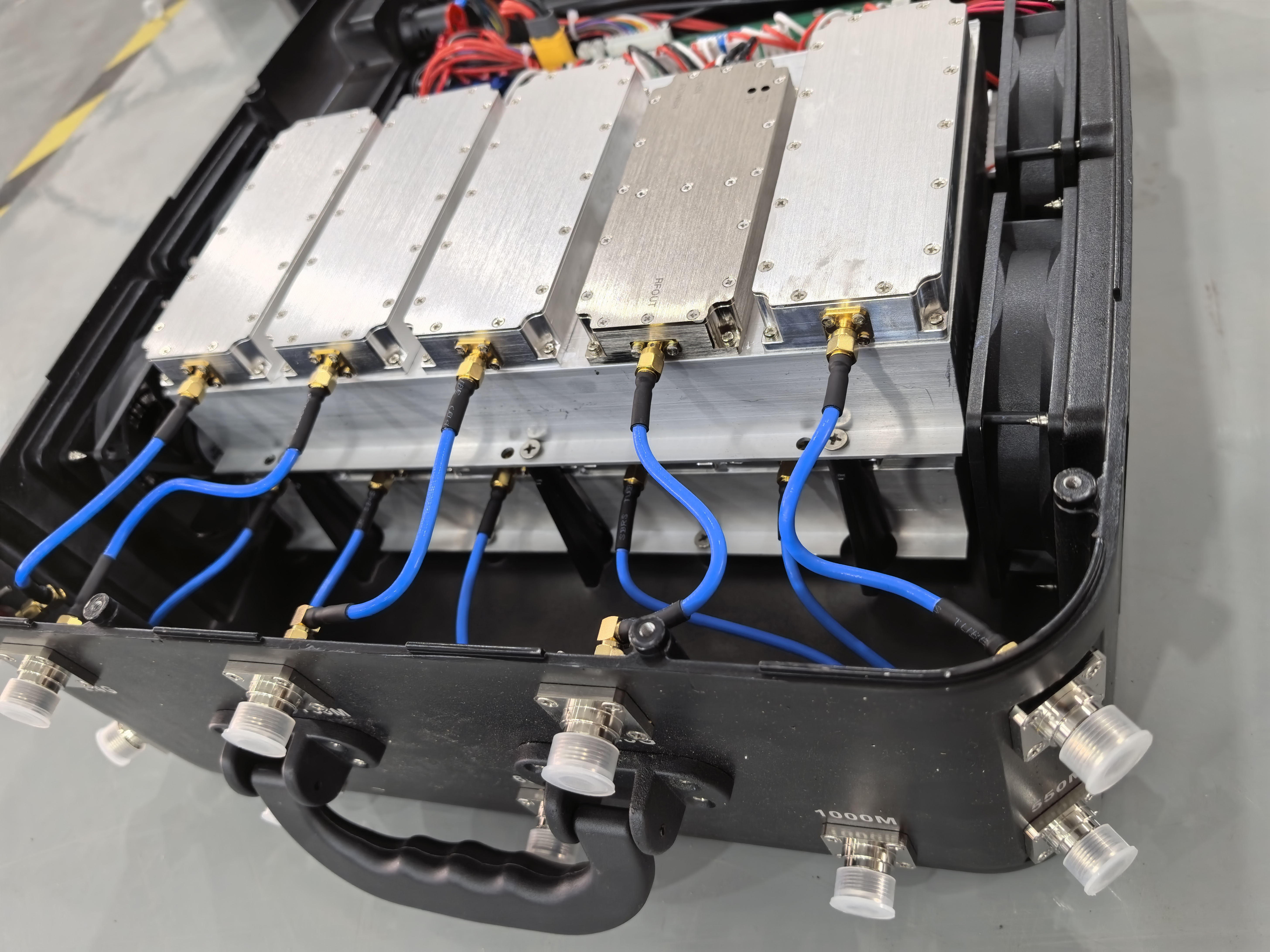 El dispositivo de interferencia de señal de UAV con diseño de frecuencia multibanda TXtelsig puede interferir con los UAV comunes mediante tecnología de frecuencia de RF.