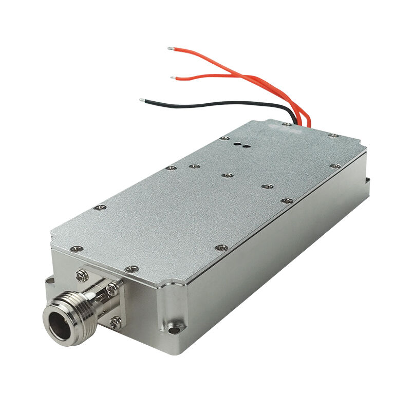 Este es un componente central diseñado para destruir las señales de los drones. Es un módulo amplificador de potencia de radiofrecuencia (RF) que actúa como el "músculo" para un inhibidor de drones (sistema anti-UAS). Toma una señal débil y la amplifica a 50 vatios, luego la transmite a través de una antena para bloquear, interrumpir y desactivar los drones no deseados al abrumar sus enlaces de control, GPS y video.