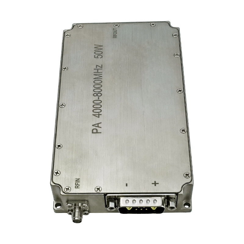 Este módulo amplificador de potencia de 50W de alto rendimiento industrial desarrollado y alcanzado por Shen Zhen Electronic Co., Ltd.Se utiliza principalmente en sistemas anti-drones y el rango de cobertura de banda de más de 4000 MHz de 4 GHz a 8 GHz En comparación con las tecnologías anteriores, este amplificador de banda ancha reduce la carga de llevarlo.